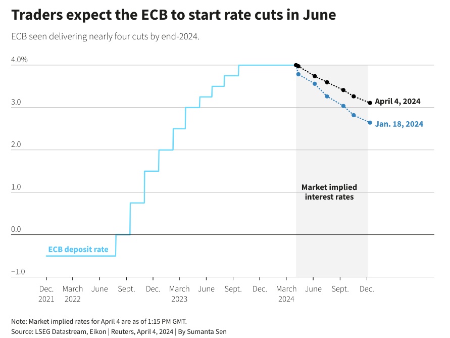 分析师表示,如果欧洲央行选择谨慎,会议可能会指出,数据正朝着降息的正确方向发展,或者可能暗示,将以6月前的数据作为判断条件。