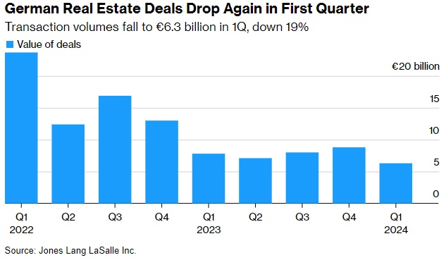 智通财经APP获悉,仲量联行的数据显示,今年年初,投资者对德国房地产交易的兴趣依然低迷,尽管一些房地产的估值似乎正在触底,利率下调的日子也越来越近。