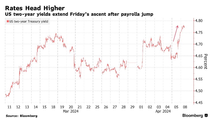 尽管美国利率互换合约交易在欧洲时段的流动性可能有所下降,但市场几天来一直在降低对美联储降息的押注,原因是美国经济数据仍具有弹性,美联储官员也不认为有必要放松货币政策,一些官员甚至强调,如果通胀进展停滞,可能会有加息的风险。美国消费者价格指数将于本周三公布。