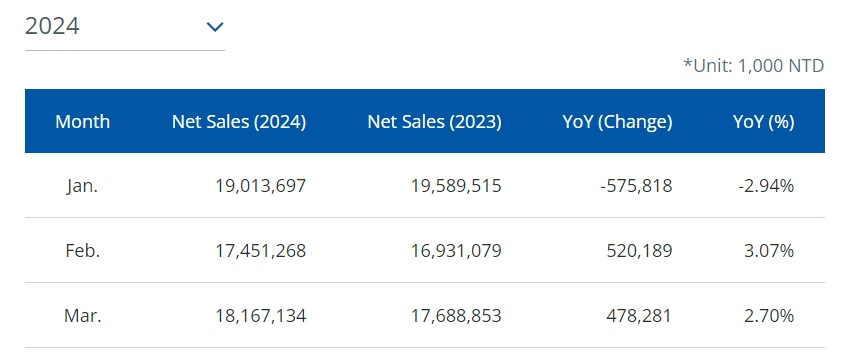智通财经APP获悉,联电(UMC.US)3月净销售额同比增长2.7%,至181.67亿元新台币;2024年前三个月,该公司净销售额同比增长0.78%,至546.32亿元新台币。