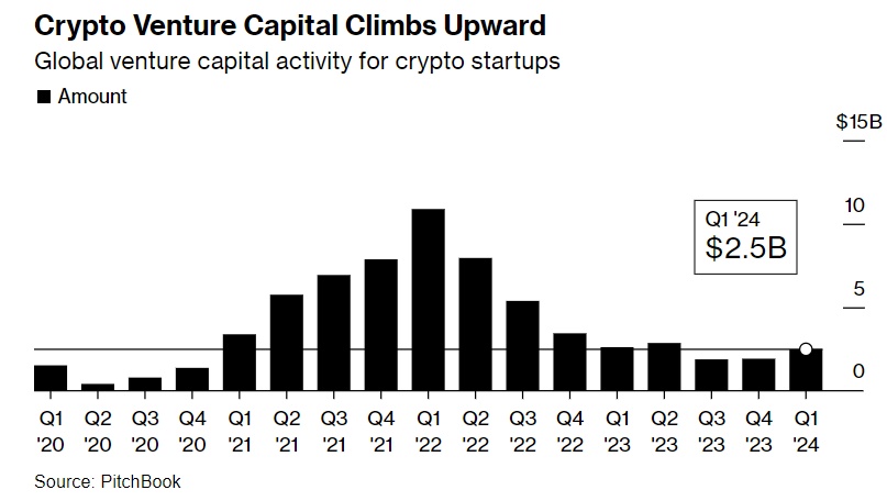 PitchBook的统计数据显示,在2024年第一季度,加密货币领域初创公司接受的风险投资总额达到约25亿美元,相比于上一季度大幅增长32%,与上年同期的投资规模基本持平。与此同时,加密货币初创公司正在筹集更多资金,风险投资公司则正在同步推出全新的数字资产基金。
