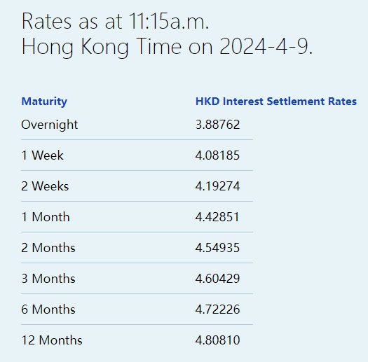 智通财经APP获悉,4月9日,港元拆息几乎全线下跌,仅隔夜息轻微回升至3.88762%。与楼按相关的一个月拆息连跌7日,低见4.42851%,续创去年9月11日最低。