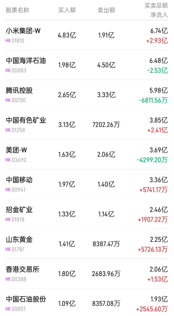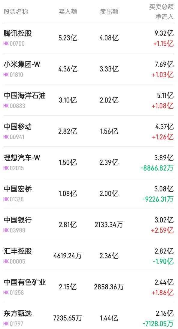 此外,小米集团-W(01810)、腾讯(00700)分别获净买入3.95亿、4723万港元。而理想汽车-W(02015)遭净卖出8866万港元。