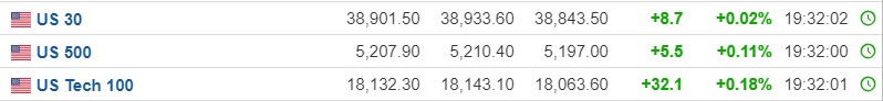 1. 4月9日(周二)美股盘前,美股三大股指期货齐涨。截至发稿,道指期货涨0.02%,标普500指数期货涨0.11%,纳指期货涨0.18%。