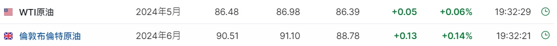 3. 截至发稿,WTI原油涨0.06%,报86.48美元/桶。布伦特原油涨0.14%,报90.51美元/桶。