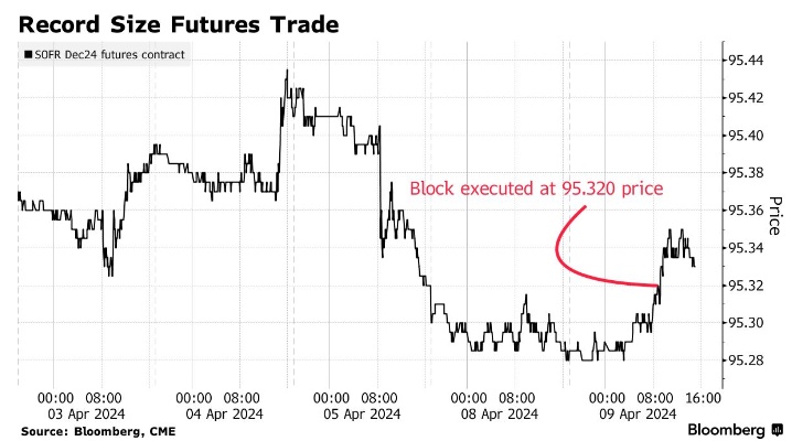 SOFR期货于2018年5月推出,已成为对美联储设定的利率进行押注的主要工具。大宗交易是私下协商的、单一价格的、满足最低规模门槛的交易。期货价格随后上涨,暗示交易是由买方发起的,美债收益率则进一步跌向日低。