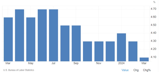 有市场参与者认为,今年下半年美联储降息应该足以推动股市走高。尽管投资者此前六次降息的预期过高,但如今不到三次的降息预期也有些低了。工资增长对物价的影响比其他任何指标都要大,而工资增长还在逐步减速,上周五美国3月非农就业报告显示,美国3月平均时薪同比涨幅小幅回落至4.1%,符合市场预期。