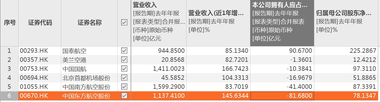 据不完全统计,2023年,港股市场的6家航空股,仅1家实现盈利,即国泰航空(00293)录得归母净利润为90.67亿元,同比增长225.29%;其余5家则仍处于亏损状态,而东方航空股份(00670)更是净亏损高达81.68亿元,由此科技绝大部分航空企业仍处于“未回血状态”。