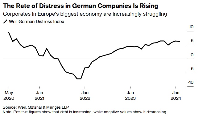 据悉,Weil, Gotshal & Manges LLP进行的这项研究汇总了超过3750家欧洲上市公司的数据。该研究报告指出,与英国、法国、西班牙和意大利相比,“德国企业继续面临着最严重的困境”。报告指出,在经济增长放缓的宏观经济环境下,投资犹豫以及持续的流动性、盈利能力挑战继续影响着德国企业。