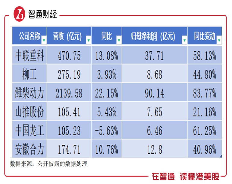 智通财经APP认为,产销量低迷令工程机械行业企业收入承压,但钢材价格回落有助于环节成本压力,加上高毛利的海外业务持续高增,令其利润增速显著高于营收增速。