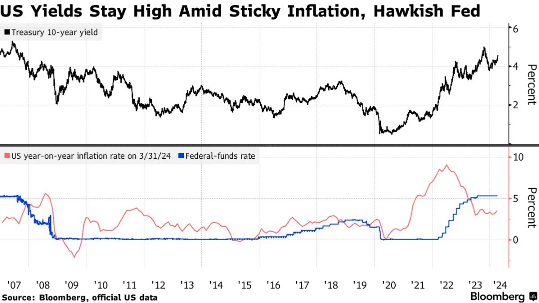康涅狄格州Newedge Wealth的高级投资组合经理本·埃蒙斯(Ben Emons)在谈到美国今年不会降息时表示:“这是一个摆在桌面上的选择,随着市场关注新的通胀风险,10年期国债收益率将全面回撤至全球金融危机前的最高点5.30%。”