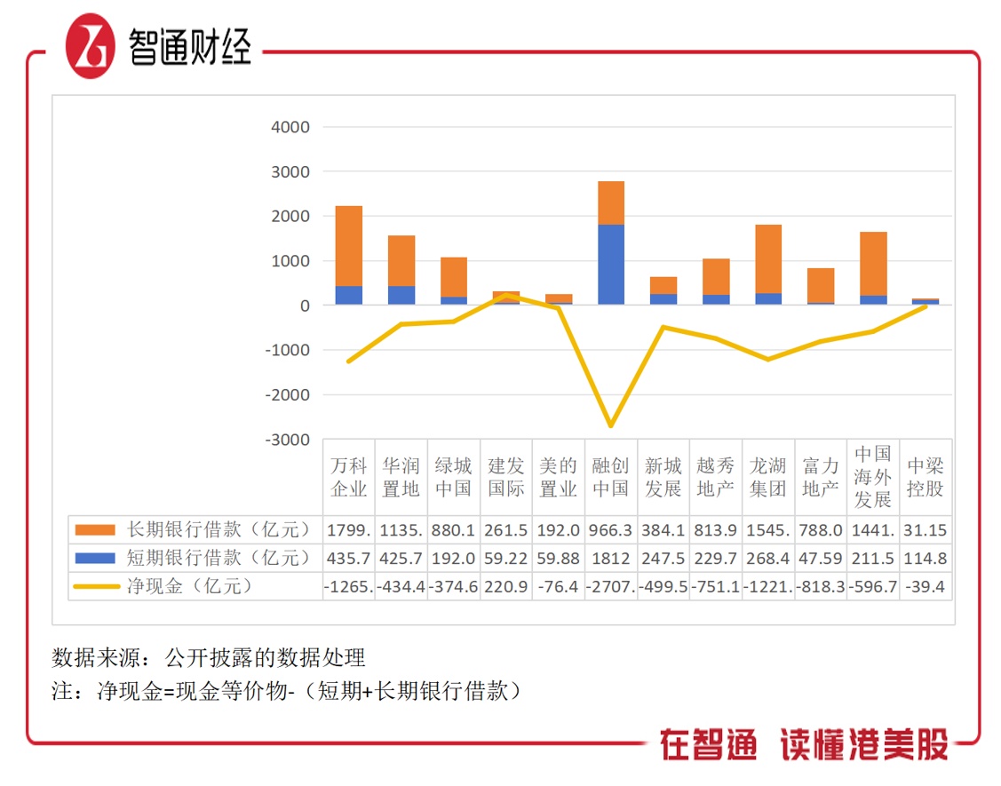万科在2018年就提出了“活下去”的口号,然行业风险以及难有消化的债务正吞噬财务稳健性。2023年该公司有息债达2235.37亿元,仅次于融创,其中短期债435.73亿元。以净现金来说,该公司与融创净现金分别为-1265.9亿元及-2707.8亿元,均低于行业整体水平,这也佐证了机构下调万科的评级。