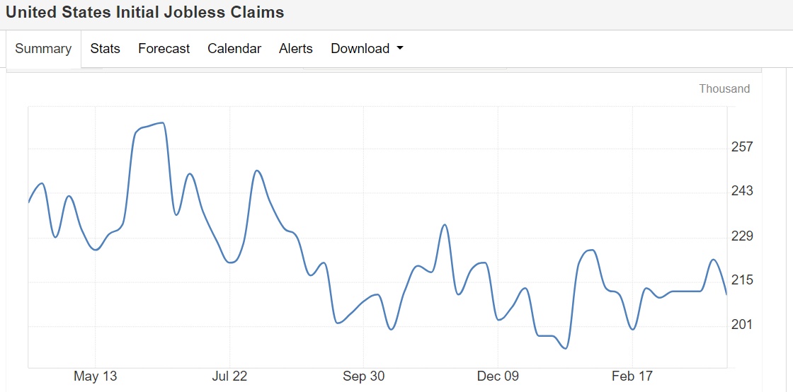 接受媒体调查的经济学家们此前普遍预计,根据经季节调整后的数据,截至4月6日的七天内,最新的申请失业救济人数将达到21.7万人,但是最新的实际数据低于这一预期。