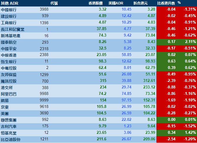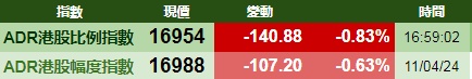 智通财经APP获悉,周四美股三大指数涨跌不一,港股ADR指数下跌,按比例计算,收报16954点,较香港收市下跌140.88点或0.83%。