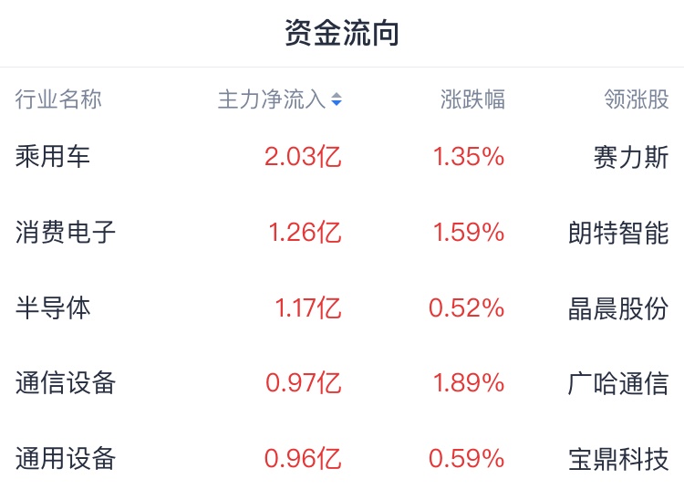 主力资金方面,资金青睐乘用车、消费电子、半导体等行业;资金出逃电池、IT服务、电网设备等行业。