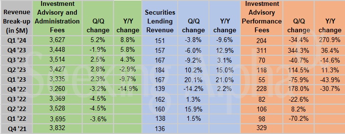 受资产管理和绩效费用上涨以及技术服务收入扩大的推动,该季度总营收同比增长11%,达到约47.3亿美元,分析师预期为46.4亿美元。