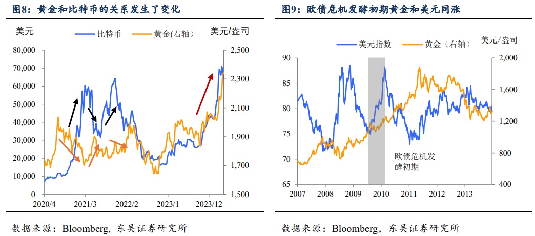 从投资机构的角度,黄金投资的重要价值在于博弈美联储货币政策、对冲股市、通胀、地缘政治和货币(主权债务)风险。地缘政治风险带来的需求可持续性不足、投机性更强,可能更值得关注的,一是拜登政府顶着通胀降息的“不负责任”预期,3月美国通胀超预期后,白宫明确表示要通过提高供给来缓解通胀,背后是财政支出加速的逻辑;而且拜登也继续强调今年年内要降息。