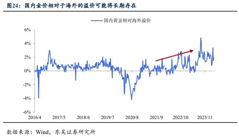 一是国内金价相对海外的溢价在没有很强人民币贬值预期的背景下是否出现大幅上涨;
