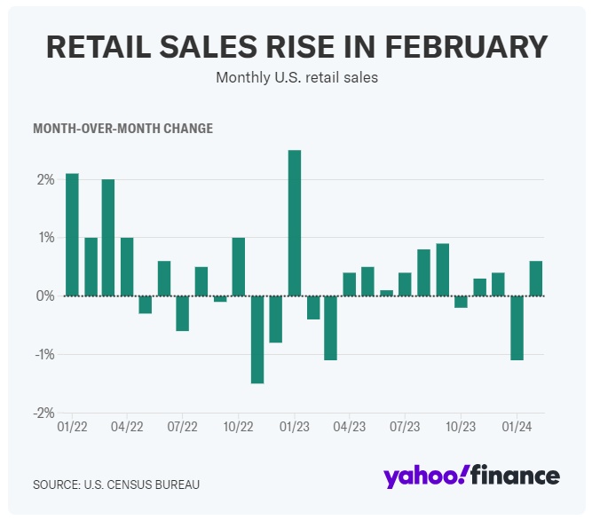 在消费者信心方面,市场将密切关注即将发布的3月零售销售数据,以此作为评估美国消费者韧性的重要指标。Wells Fargo的经济团队指出,尽管面临多重挑战,但他们认为消费者支出不会显著放缓,特别是在工资增长仍然稳健的情况下。市场普遍预计,美国3月零售销售环比将增长0.4%,延续2月的反弹趋势。