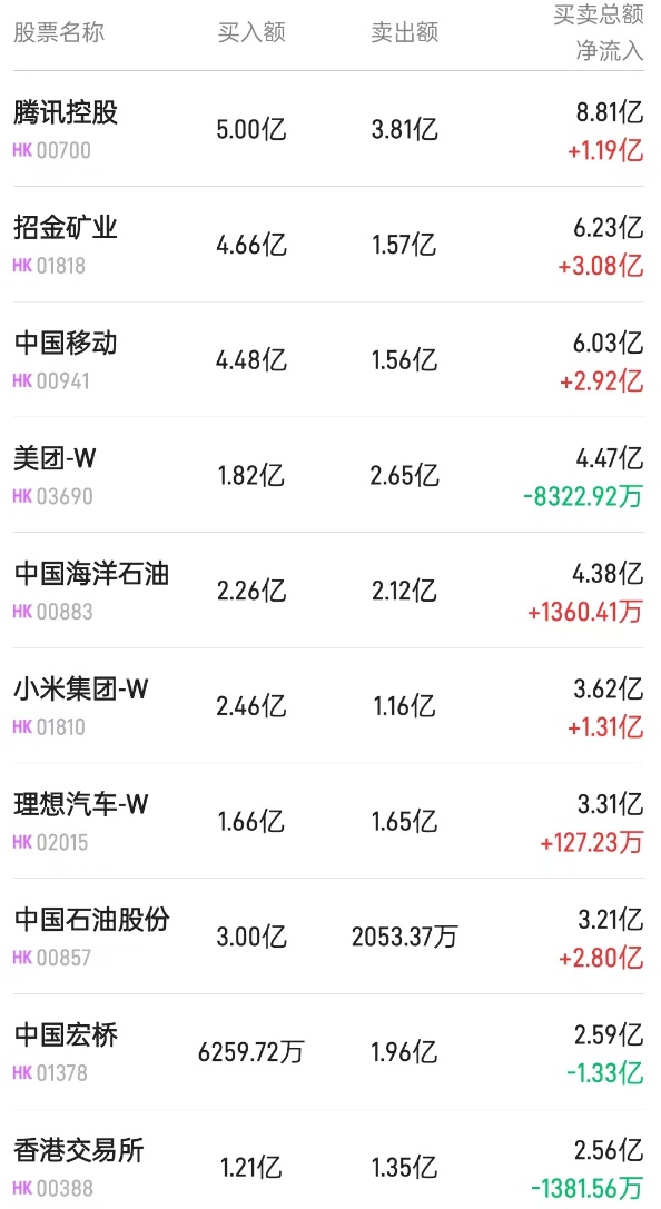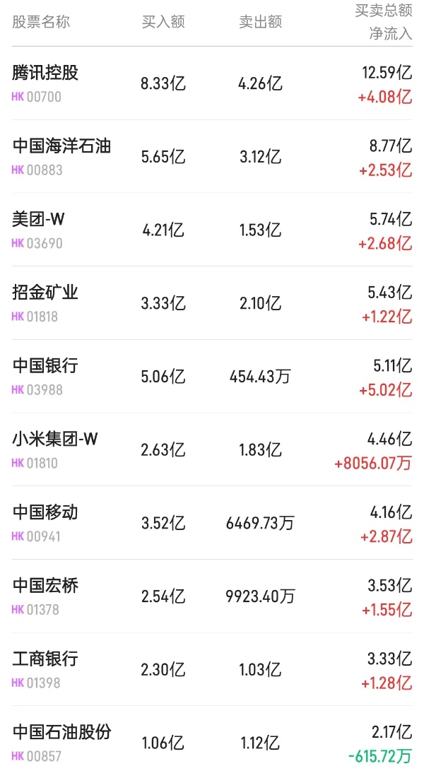 内银股受追捧。中国银行(03988)、工商银行(01398)分别获净买入5.01亿、1.27亿港元。消息面上,中央汇金公司再次出手增持。汇金公司通过上海证券交易所交易系统累计增持中国银行A股股份3.3亿股,约占该行总股本的0.11%;汇金公司通过上交所系统累计增持工行2.86亿股A股,占总股本0.08%。业内人士表示,汇金作为大股东增持银行股更多是战略性,大股东增持有助于增厚银行资本,提升经营能力;汇金公司增持有助于大型银行股价稳定,更好地实现对国有银行的控股地位,通过这种措施也传递出稳定和提振市场信心的信号,有利于推动资本市场健康发展。