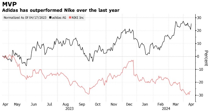 大摩将阿迪达斯评级从“减持”上调至“增持”,并将目标价从175欧元上调至235欧元。截至发稿,阿迪达斯在德国股市上涨4.4%,至205欧元。在机构追踪的分析师中,阿迪达斯目前有15个“买入”评级,14个“持有”评级,6个“卖出”评级。今年以来,阿迪达斯的股价上涨了11%,而耐克的股价则下跌了15%以上。
