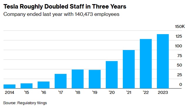 智通财经APP获悉,据报道,由于电动汽车需求放缓,特斯拉(TSLA.US)将在全球裁员10%以上。数据显示,截至2023年底,特斯拉在全球共有140,473名员工,按该数字计算,裁员10%意味着将有1.4万人将失去工作。
