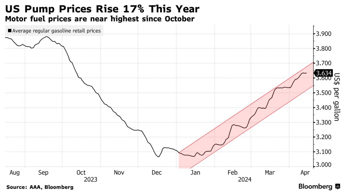 这个世界最大的石油消费国正密切关注汽油需求,因为汽油价格上涨可能会刺激通货膨胀。美国能源情报署(EIA)最近将其对2024年零售汽油价格的预测从每加仑3.50美元上调至3.60美元。