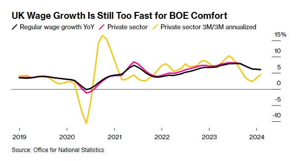 然而,仍有一些挥之不去的紧张迹象。职位空缺的长期下滑结束,招聘信息增至91.6万个。对英国央行来说,衡量国内通胀压力的关键指标——私营部门的常规工资增长仅缓慢下降至6%。