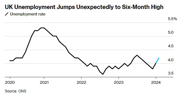 智通财经APP获悉,随着经济中的就业岗位数量减少,英国的失业率意外上升至六个月来的最高水平,这表明一度火热的劳动力市场正在降温。英国国家统计局周二表示,截至2月的三个月内,失业率从上一时期的3.9%上升至4.2%。这是自2020年以来的最大增幅,当时该国正在摆脱疫情封锁。