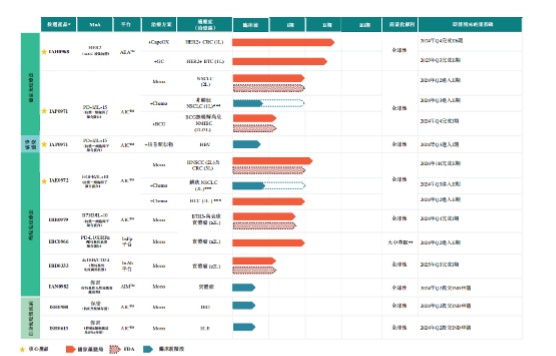 具体来看,IAH0968是一种抗体依赖性细胞介导的细胞毒性(ADCC)增强型单克隆抗体(mAb),公司已启动针对胆道癌(BTC)及结直肠癌(CRC)的II期临床试验。IAP0971及IAE0972均为抗体细胞因子,已完成针对晚期实体瘤(包括非小细胞肺癌(NSCLC)及CRC)的I期临床试验。