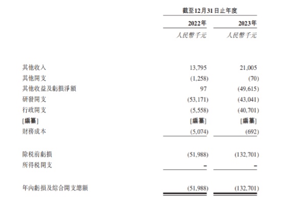 财务数据显示,盛禾生物目前尚未拥有商业化产品,2022年至2023年(以下简称:报告期内),分别亏损0.52亿元及1.33亿元。报告期内,公司的研发开支分别为5317.1万元及4304.1亿元。