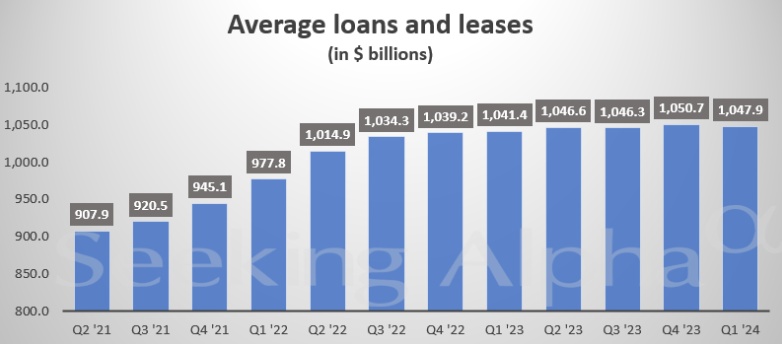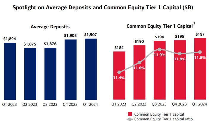 如果剔除联邦存款保险公司的费用,Q1调整后的非利息支出(不包括FDIC特别评估)为165亿美元,增长2%,高于第四季度的156亿美元和2023年第一季度的162亿美元。