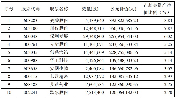 再看中庚小盘价值,一季度调仓动作非常明显,减持了赛腾股份(603283.SH)、立华股份(300761.SZ)、安图生物(603658.SH)、艾迪药业(688488.SH)、歌尔股份等多只个股,博众精工(688097.SH)、华统股份(002840.SZ)退出前十大,保利发展(600048.SH)、华工科技(000988.SZ)新进前十大。值得一提的是,在这些个股中,大多数个股市值集中在100亿元~300亿元,而保利发展的最新市值超900多亿元。
