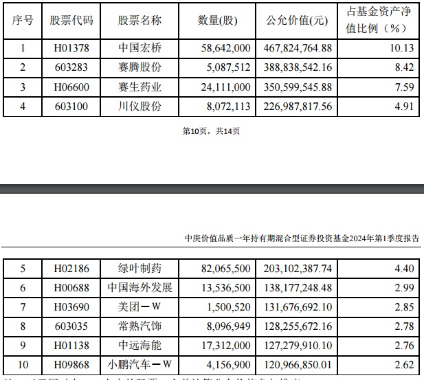 先看丘栋荣管理时间最长的中庚价值领航混合,一季度主要减持了小鹏汽车-W(09868)等个股,歌尔股份(002241.SZ)、神火股份(000933.SZ)退出前十大,快手-W(01024)、美团-W(03690)新进前十大。值得关注的是,截至2024年4月15日,今年以来涨超50%的神火股份,在一季度被卖飞了。