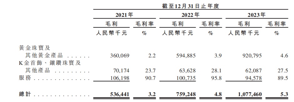 据招股书数据显示,2021年至2023年,梦金园剔除套保损益后的净利润则分别为1.48亿元、3.52亿元、5.33亿元,复合年增长率高达89.4%(同期净利润CAGR 2.1%),不论是盈利规模,还是盈利增速,均远超同期净利润水平。