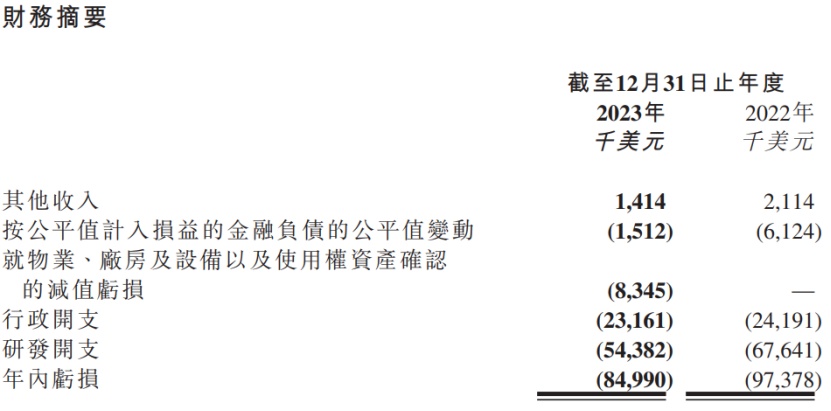 虽然随着管线研发的不断深入,但公司正在有意识地缩减开支。数据显示,公司研发费用从2022年的6764.1万美元降至至2023年同期的5438.2万美元,随之减少的还有行政费用。