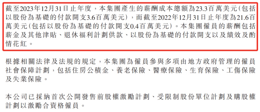 但研发经费不足似乎并不影响圣诺医药的公司福利,财报显示,2023年公司董事酬金及员工成本却不降反增,由2022年的2160万美元上升至2330万美元。其中,董事薪酬由191万美元上涨至337万美元,同比增长76.44%。