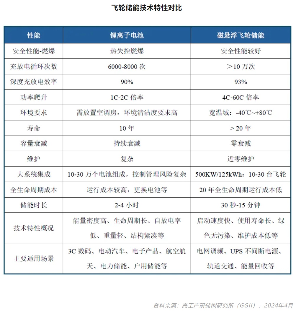 GGII指出,通过优化电网运行、增强可再生能源的接纳能力以及提高电网应急响应能力,飞轮储能不仅支持了清洁能源的扩展,也促进了电力供应的稳定性和可靠性。特别是在面临高可再生能源渗透率和电网负荷波动较大的省份,飞轮储能项目的实施显得尤为重要。未来,随着技术的持续进步和成本的进一步降低,飞轮储能技术的应用范围和影响力预计将进一步扩大。
