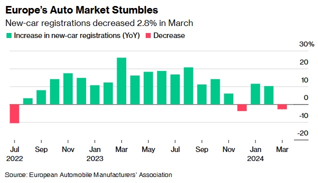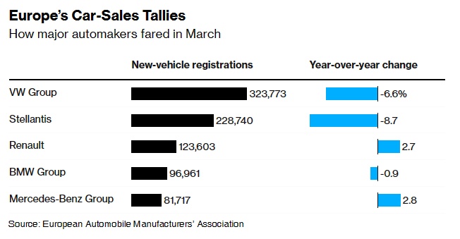 这是四个月来欧洲乘用车销量的第二次下滑。尽管有部分原因是复活节假期,但同时也突显出,在利率上升、经济增长放缓以及旨在刺激电动汽车需求的慷慨补贴逐步取消之际,汽车制造商面临的压力。