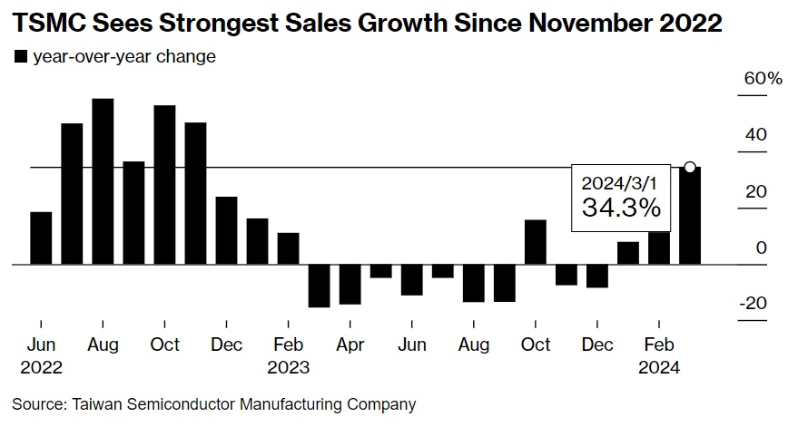 统计数据显示,自2022年10月的股价历史性低谷以来,台积电的市值已经大幅增长约3400亿美元,华尔街投资机构普遍押注台积电将成为全球企业布局人工智能技术的这股狂热浪潮中最明显的赢家之一。该公司在今年年初设定的2024年资本支出预算则为280亿至320亿美元,台积电目前仍然预测全年资本支出为该区间,并预计在2024年的资本支出中,70%-80%将用于先进制程技术。
