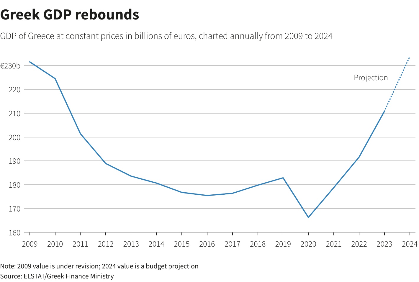 智通财经APP获悉,十几年前,一场毁灭性的债务危机给希腊带来了多年的紧缩、艰难和动荡。如今,希腊官员和投资者表示,2024年可能是这个国家完成复苏的最后一年。经济学家预计,希腊经济今年有望增长3%,接近2009年债务危机前的水平,且远高于欧元区0.8%的平均水平。
