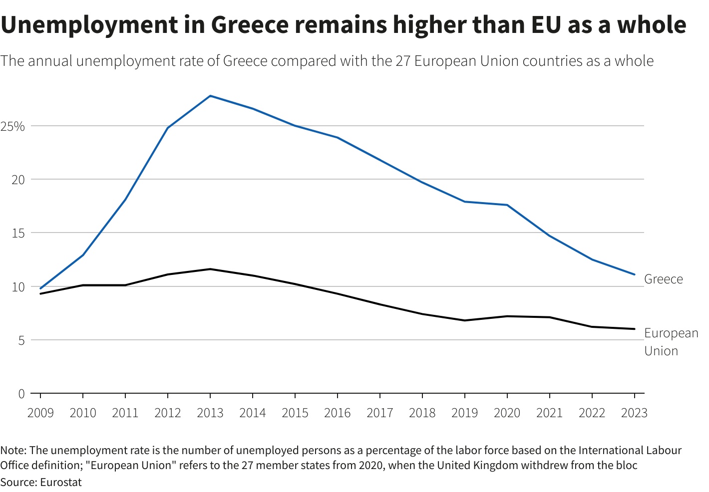 然而,对许多希腊人来说,经济复苏并没有转化为生活水平的提高。欧盟统计局的数据显示,希腊的失业率仍在10%以上,是欧盟成员国中仅次于西班牙的第二高失业率。另外,希腊的人均GDP购买力在欧盟成员国中处于最低水平。希腊劳动部的数据显示,平均月薪为1175欧元,比15年前低了20%。