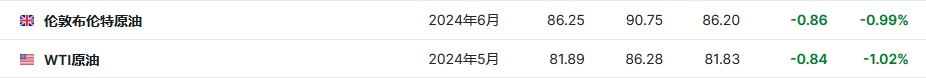 3. 截至发稿,WTI原油跌1.02%,报81.89美元/桶。布伦特原油跌0.99%,报86.25美元/桶。