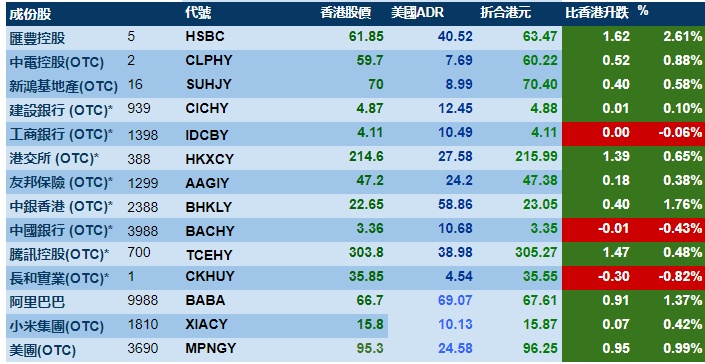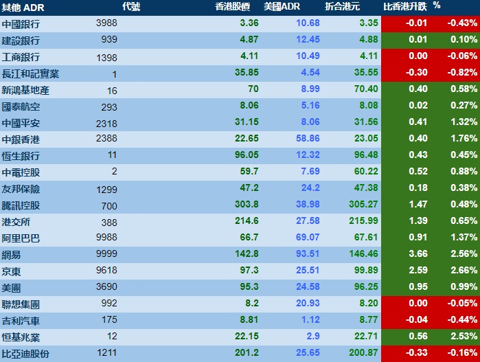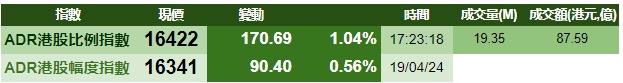 智通财经APP获悉,周五美股三大指数涨跌不一,港股ADR指数上涨,按比例计算,收报16422点,较香港收市上涨170.69点或1.04%。
