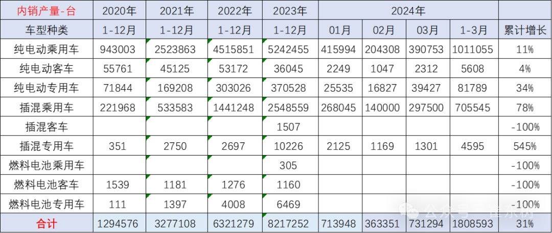 根据合格证电池量测算2024年3月的合格证产品产量是73.1万台,1季度同比增31%,其中纯电动乘用车增11%,插混乘用车增78%,纯电动专用车同比增34%,这样的产量数据还是较好的。