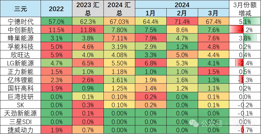 由于比亚迪全面转型磷酸铁锂电池,因此宁德时代等前三家的三元电池优势更加明显,近期蜂巢能源表现较好。