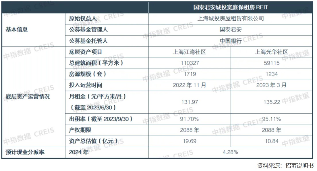 2024年一季度,国泰君安城投宽庭保租房REIT正式上市,多支保租房REITs在筹备发行中。1月12日,国泰君安城投宽庭保租房REIT正式上市,募集规模超30亿元,是目前发行规模最大的保租房REITs。受益于政策支持,目前保租房公募REITs申报发行节奏加快,建信建融家园租赁住房REIT、青岛房投保租房REIT、上海临港科技城保租房REIT、北京昌平保障房公募REIT等多支保租房REITs正在筹备发行事宜,其中,建信建融家园租赁住房REIT已经申报至上交所,且于4月15日获得上交所反馈。