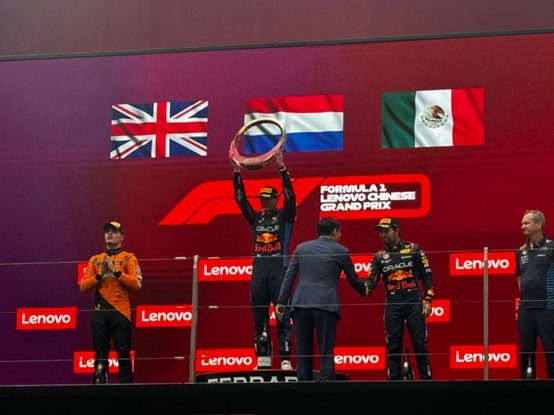 经过56圈的争夺,主场作战的中国车手周冠宇顺利完赛,获得第14名。红牛车队车手维斯塔潘以明显优势夺得冠军,迈凯伦车队车手诺里斯和红牛车队车手佩雷兹分获二三名。