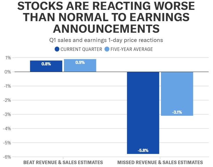 与此同时,在营收和利润都令人失望的公司受到的打击比正常情况更大,股价在下一个交易时段平均下跌5.8%,而过去五年通常下跌3.1%。Emanuel表示:“考虑到(标普500指数的)估值过高,即使是好消息也可能不是好消息,尤其是那些已经走到目前为止的公司。”