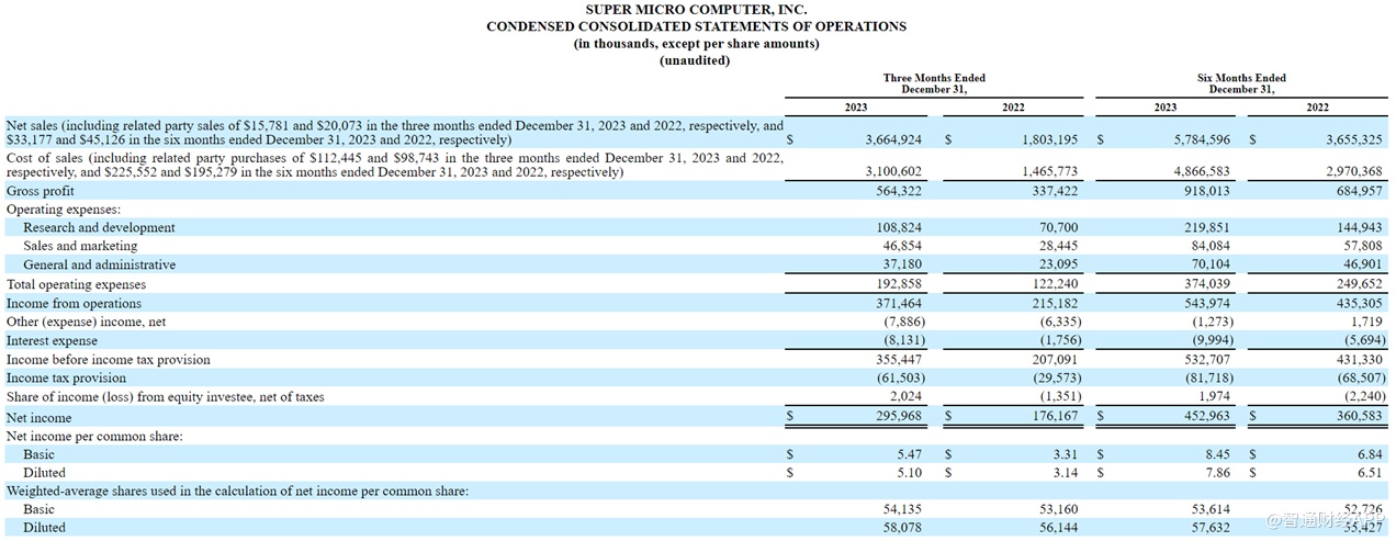 展望未来,超微电脑上调了2024财年的收入预期,预计截至2024财年(截至今年6月底)的销售额将在143亿至147亿美元之间,远远高于此前预测的100亿至110亿美元。